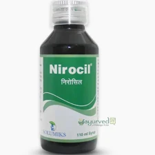 Solumiks Nirocil Syrup is an Ayurvedic formulation designed to treat upper respiratory tract infections (URTIs) and viral infections like influenza, measles, and herpes zoster. It boosts immunity, supports liver health, and reduces the severity of infections using ingredients like Tamalaki, Guduchi, and Yashada Bhasma. It is generally used under medical supervision.